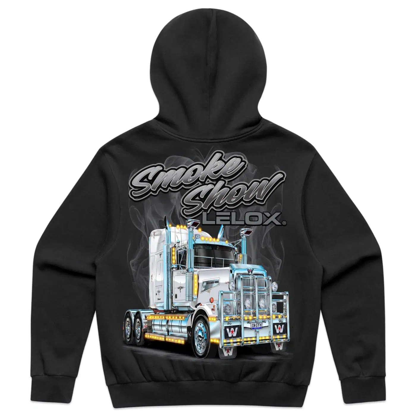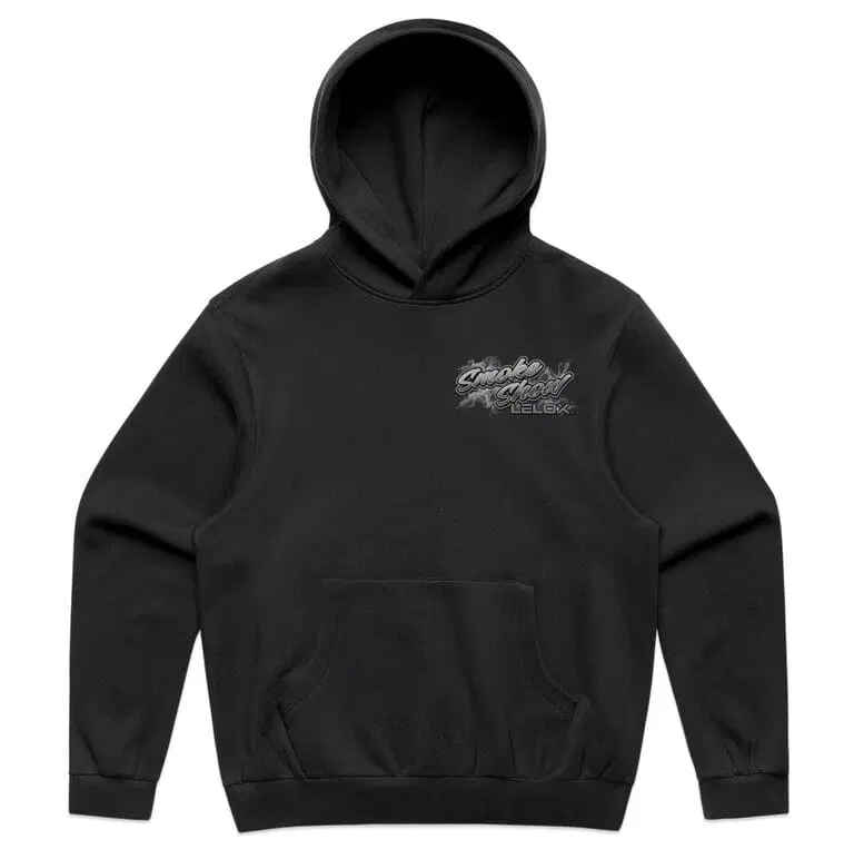 The front features the classic LELOX lettering paired with the smokeshow font, giving the hoodie a sharp, standout look.