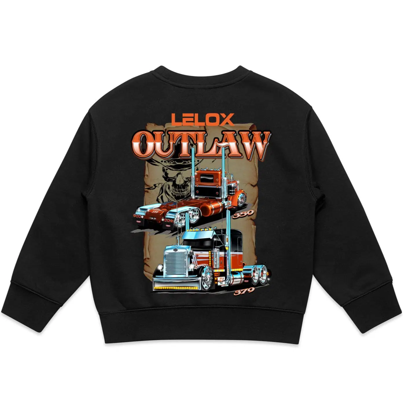 Let the little rebels of the road show their style with the kids outlaw (Peterbilt) crewneck jumper.