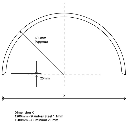 1.2mm stainless steel shiny finish. Single mudguard with curved edge